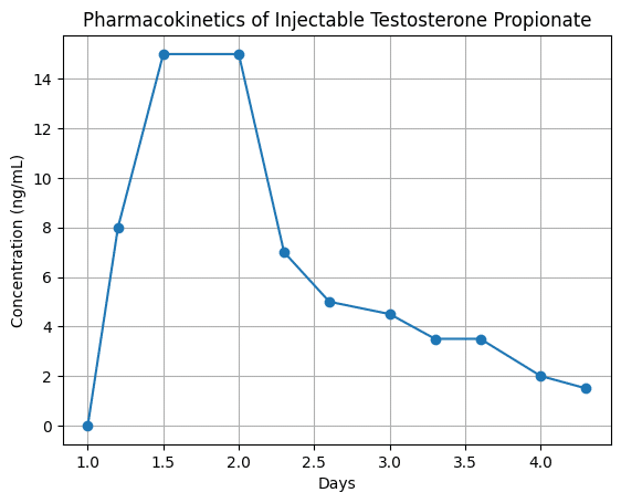 | Testosterone Propionate | ~2 days | 24–48 hours | Rapid peak → rapid decline |